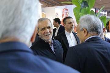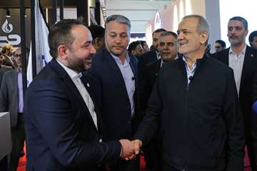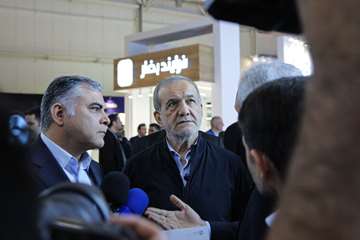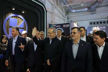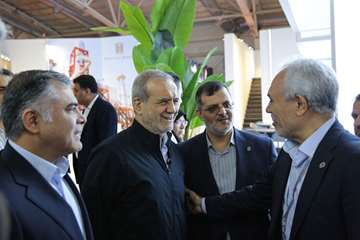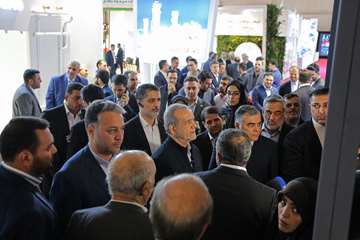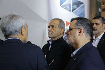 شانا _ گروه عکس: مسعود پزشکیان امروز (پنجشنبه، ۱۸ اردیبهشت) دقایقی پس از آیین گشایش بیستونهمین نمایشگاه بینالمللی نفت، گاز، پالایش و پتروشیمی وارد نمایشگاه شد و به همراه محسن پاکنژاد، وزیر نفت از سالن ۳۸B در این نمایشگاه بازدید کرد.