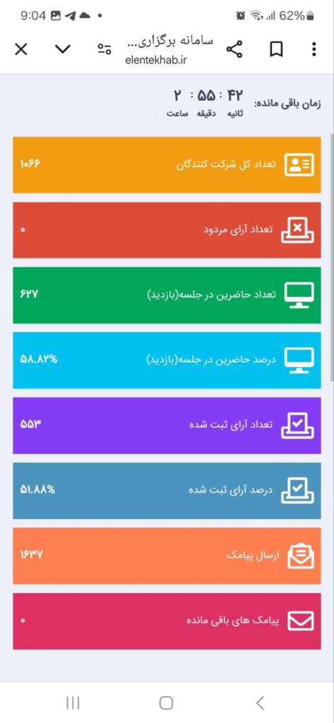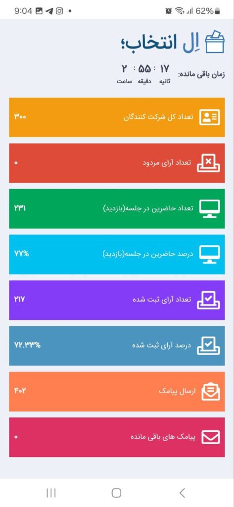 وی در پایان از مدیر عامل، سرپرست مدیریت منابع انسانی، مدیریت امور مالی و معاونت مدیر عامل درعملیات،روسای مناطق عملیاتی، رئیس روابط عمومی، رئیس حراست، رئیس ICT ستاد و مناطق عملیاتی و به ویژه روسا و کارکنان امور اداری مناطق، کارشناسان روابط عمومی ستاد و مناطق و کلیه همکاران رسمی، قراردادی و پیمانکاری که در انتخابات مشارکت داشته اند و شرایط برگزاری انتخاباتی سالم و بی نقص شده اند قدردانی نمود.