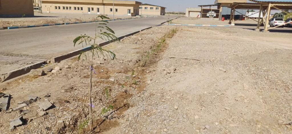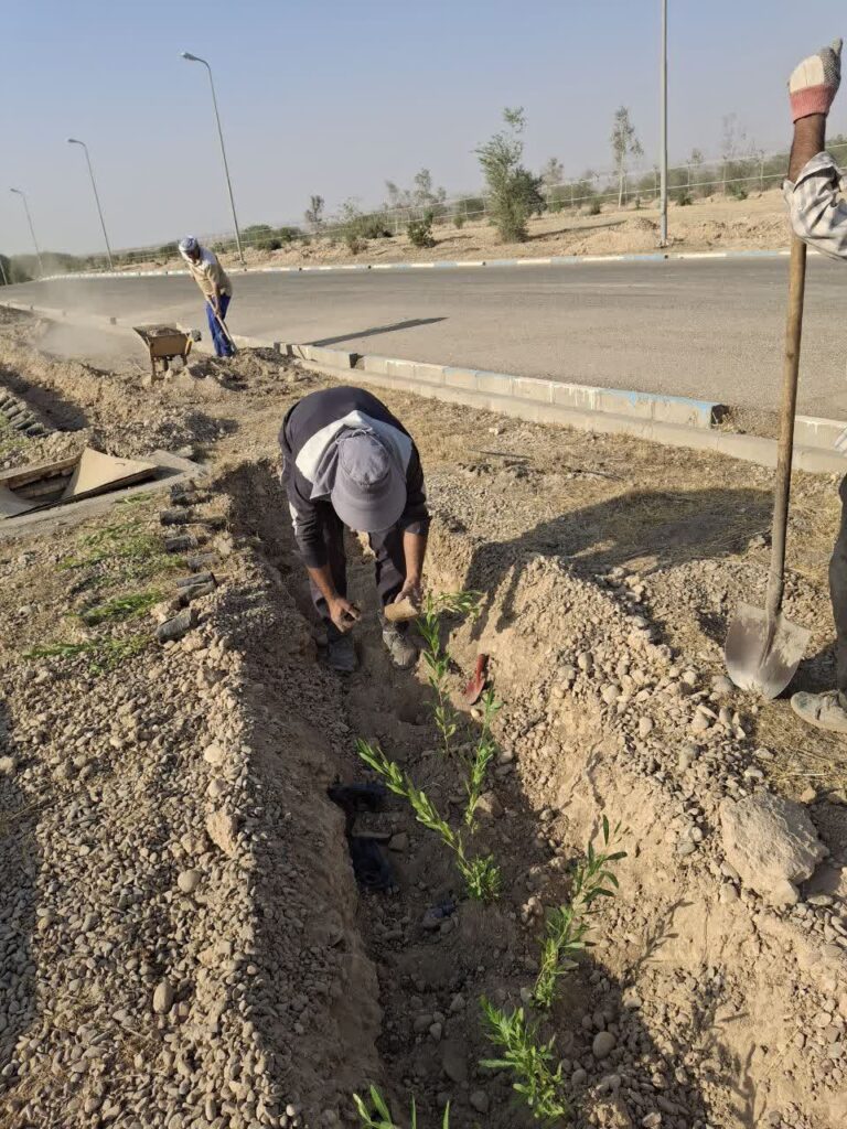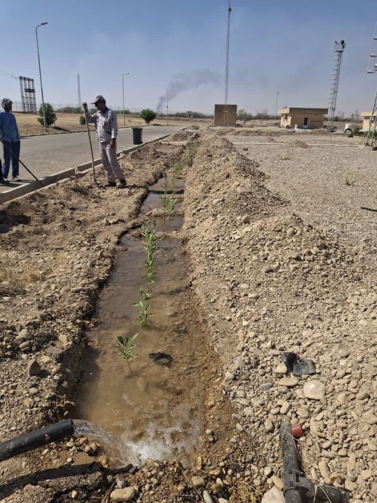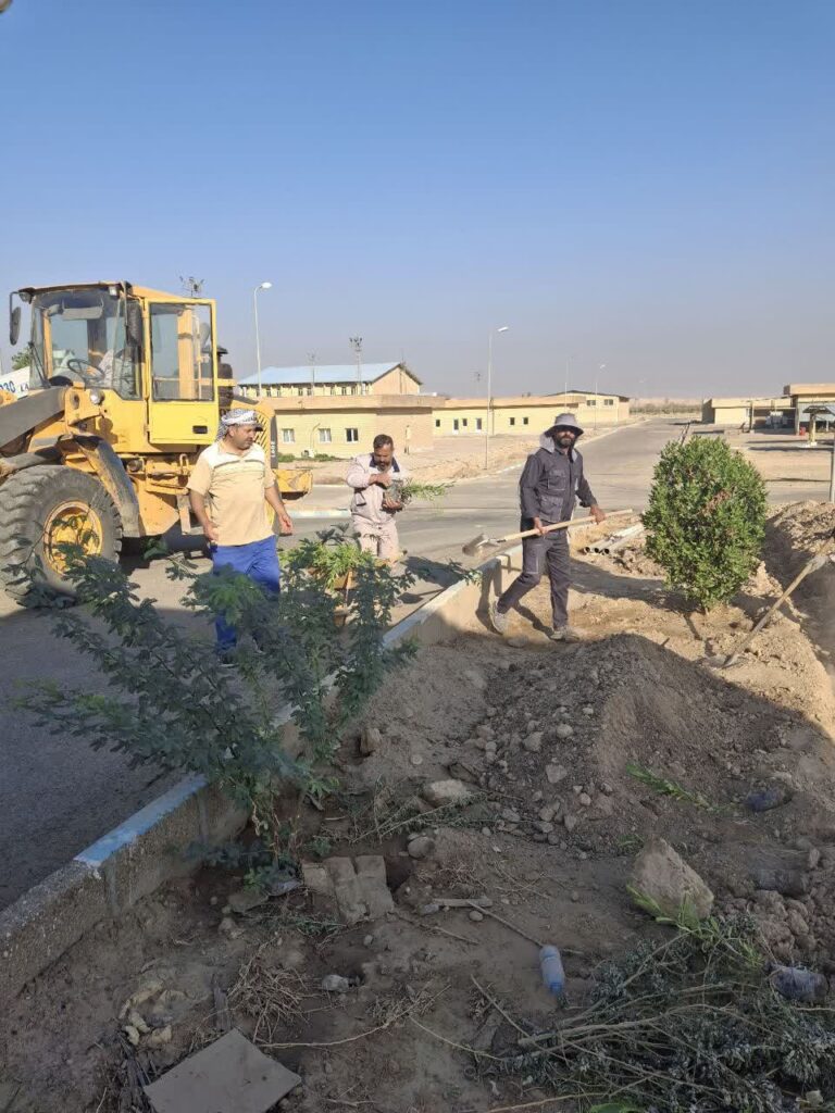 در همین راستا کارکنان واحد فضای سبز در منطقه عملیاتی دهلران با توجه به اقلیم گرم و خشک این منطقه و به منظور زیباسازی بصری و تلطیف هوا اقدام به کاشت یکصد عدد نهالهای ابریشم مصری، یکصدو بیست اصله نهال نخل پالم و هزار و ششصد اصله مورت ایرانی نمودند.