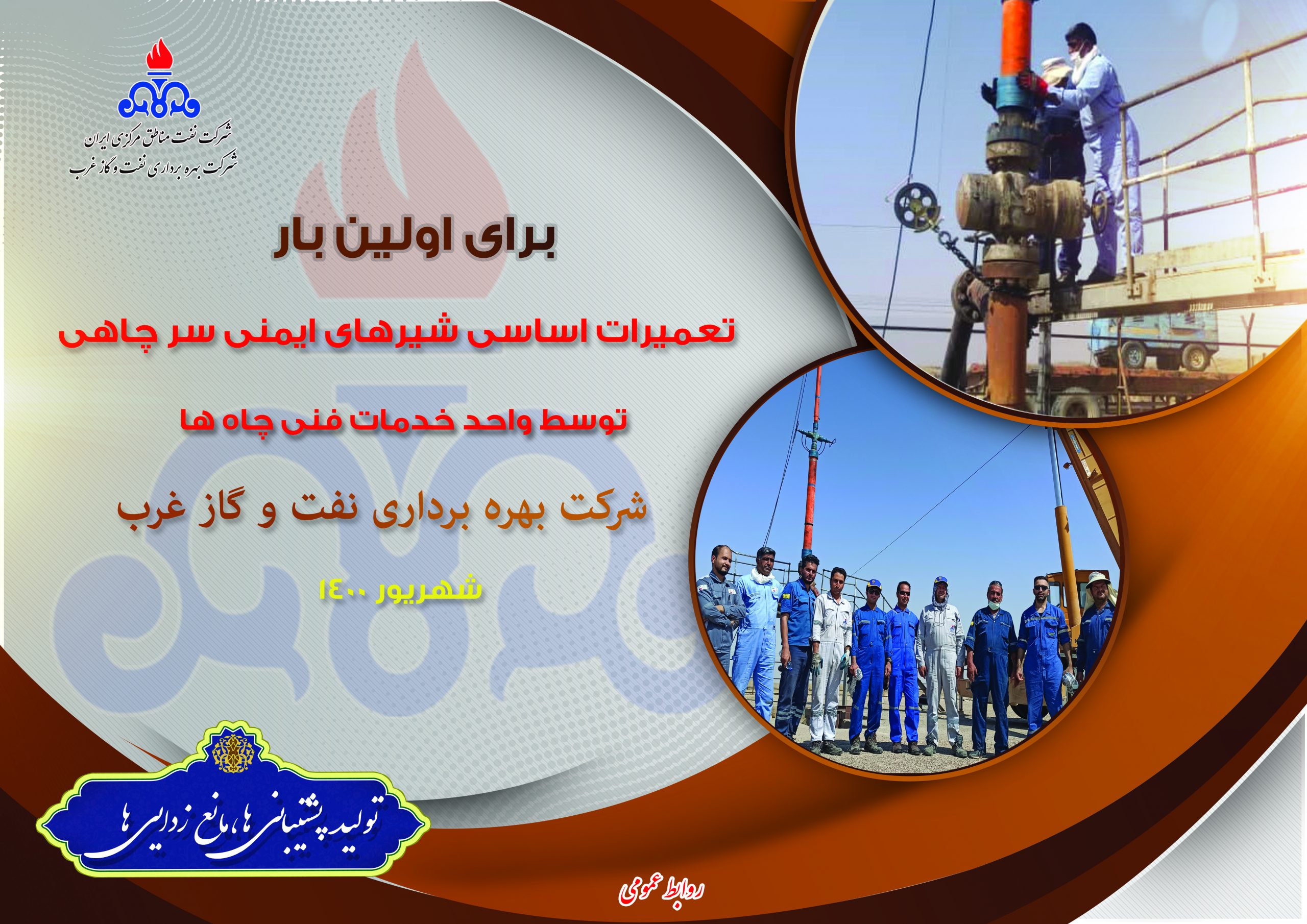 تعمیرات اساسی شیر های ایمنی درون چاهی و عملیات نصب، خارج نمودن شیرها و پیمایش چاهها توسط کارشناسان شرکت بهره برداری نفت و گاز غرب با موفقیت انجام پذیرفت.