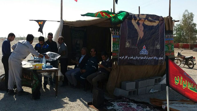 به گزارش پایگاه اطلاع رسانی شرکت بهره برداری نفت و گاز غرب با تاکید و مساعدت مهندس کریمی مدیر عامل شرکت نفت مناطق مرکزی ایران و مهندس ناصری پور مدیر عامل شرکت بهره برداری نفت و گاز غرب و حمایت و پشتیبانی استانداری و سپاه انقلاب اسلامی ایلام؛ بسیج نفت مناطق مرکزی، بسیج حوزه ۵ کارمندی صنعت نفت؛ پایگاه بسیج رهروان ولایت و روابط عمومی شرکت بهره برداری نفت و گاز غرب و با مشارکت مالی افراد خیر اقدام به برپایی موکب(ایستگاه صلواتی) پذیرایی از زائرین اربعین حسینی در شهر ایلام نمودند.