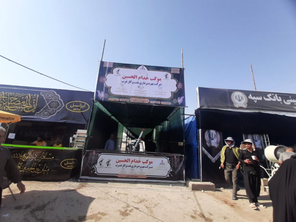 برپایی و آماده سازی موکب خدام الحسین(ع) شرکت بهره برداری نفت و گاز غرب در پایانه مرزی مهران جهت خدمت رسانی به زائران اربعین حسینی