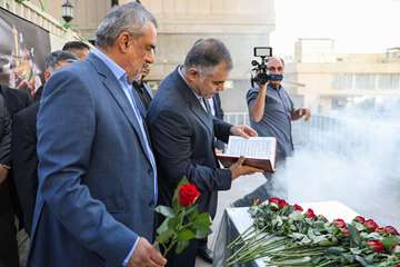 وزیر نفت صبح امروز در نخستین روز کاریاش در وزارت نفت پس از ادای احترام به سه شهید گمنام والامقام، با استقبال جواد اوجی، وزیر نفت دولت سیزدهم وارد دفتر کار خود شد.