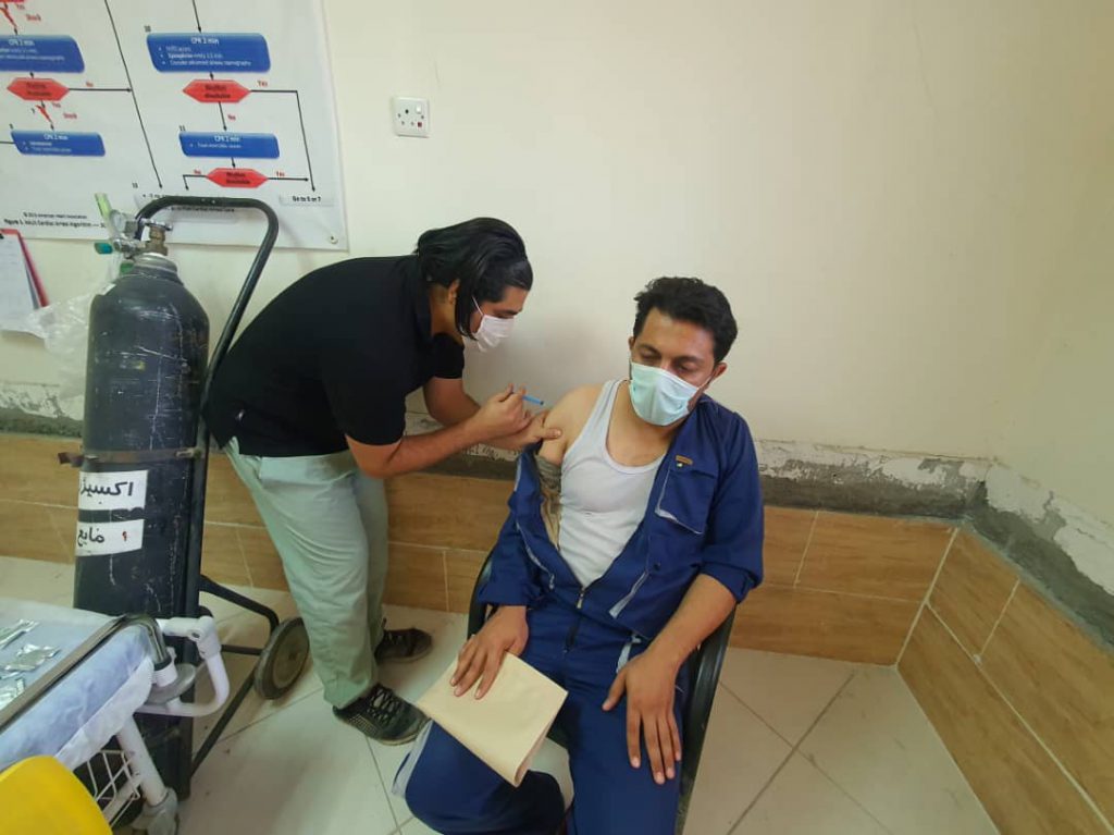 طرح واکسیناسیون کارکنان شرکت بهرهبرداری نفت و گاز غرب جهت مقابله با بیماری کرونا در ستاد کرمانشاه و مناطق عملیاتی نفت شهر، تنگ بیجار، چشمه خوش و دهلران در حال انجام است.