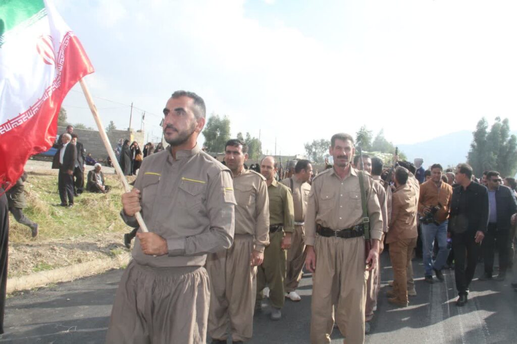 گزارش تصویری _ حضور جمعی از بسیجیان شرکت بهره برداری نفت و گاز غرب در آیین تشییع و تدفین شهید گمنام در روستای گنجوان