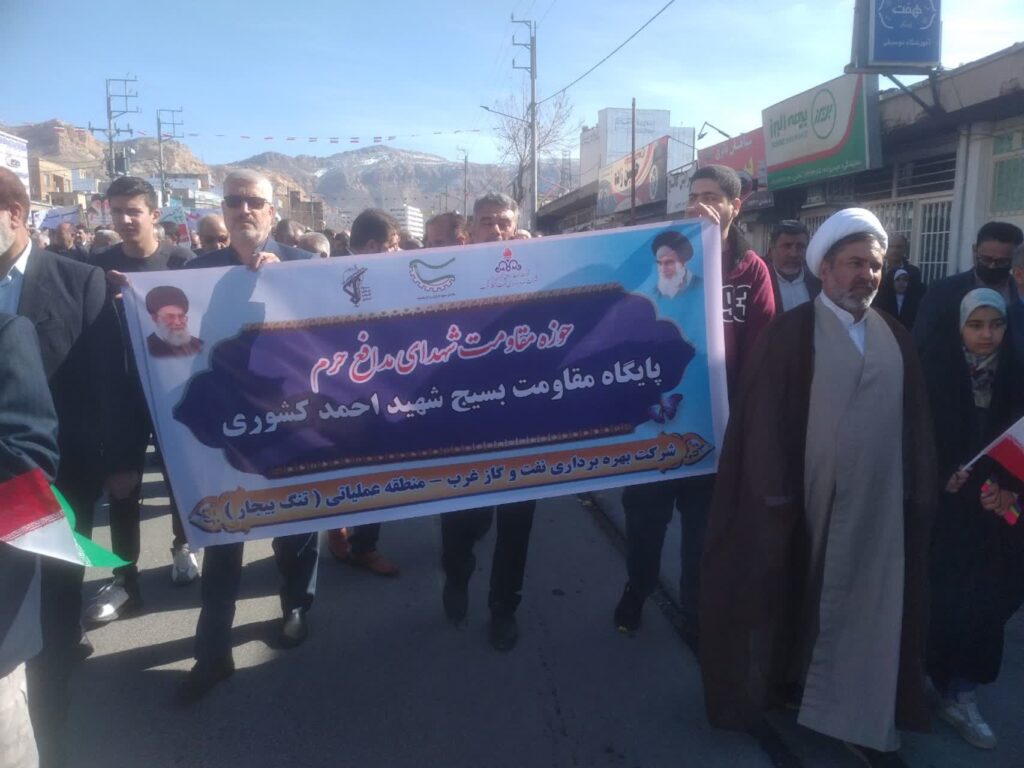 به گزارش پایگاه اطلاع رسانی شرکت نفت مناطق مرکزی ایران مدیران، روسا، کارکنان و بسیجیان شرکت در مناطق عملیاتی تابعه(نفت شهر/ تنگ بیجار، چشمه خوش/ دهلران/ سرکان مالکوه و ایلام) امسال باشکوهتر از سال های گذشته در راهپیمایی ۲۲ بهمن شرکت حضور یافتند تا به دشمنان ثابت کنند علیرغم همه فشارهای اقتصادی، هجمه ها و تهاجمات فرهنگی، تحریم ها و…. هرگز از آرمانهای انقلابی خود و تبعیت از رهبری دست نخواهند کشید و برای تداوم انقلاب اسلامی برای تحمل هر سختی آماده اند.
