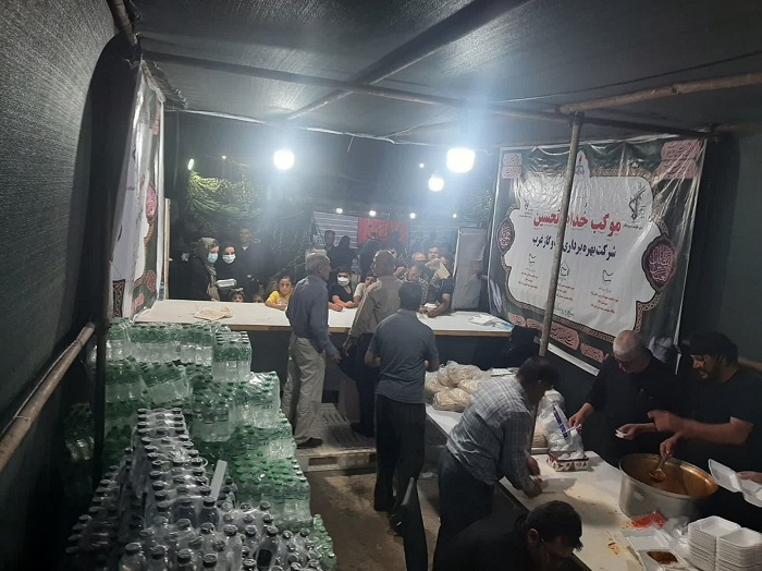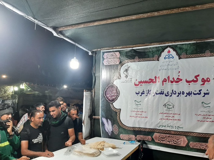 خدمت رسانی موکب خدام الحسین(ع) شرکت بهره برداری نفت و گاز غرب به زائرین اربعین حسینی (پایانه مرزی مهران)