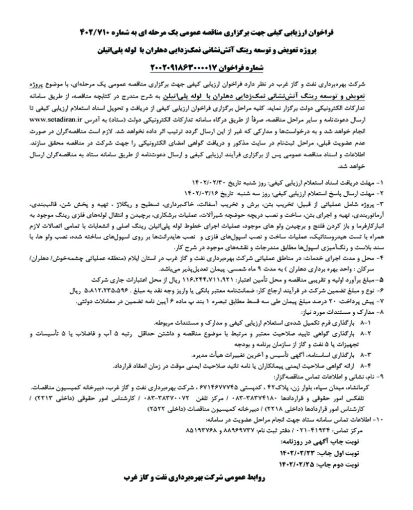 پروژه تعويض و توسعه رينگ آتشنشاني نمكزدايي دهلران با لوله پلياتيلن