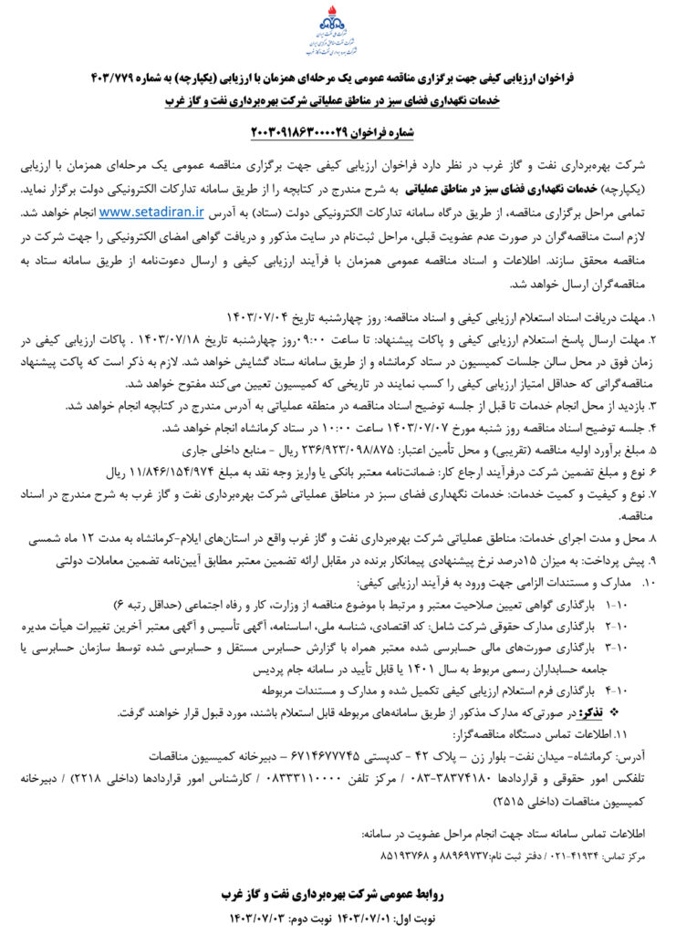 نوع فراخوان: مناقصه عمومی