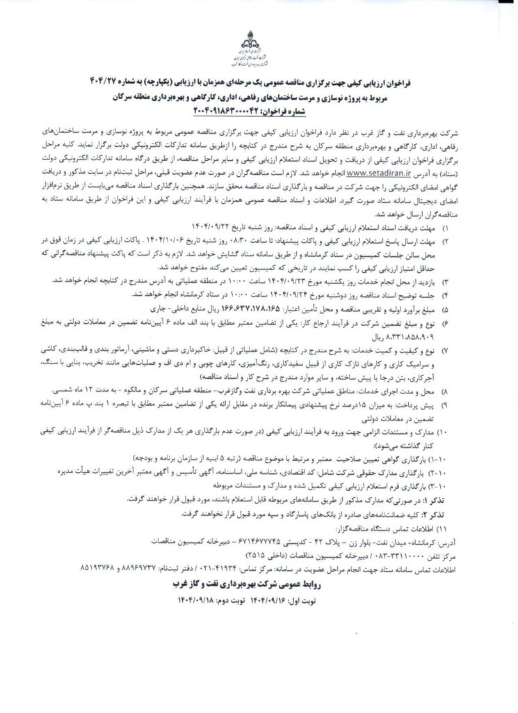 نوع فراخوان: مناقصه عمومی