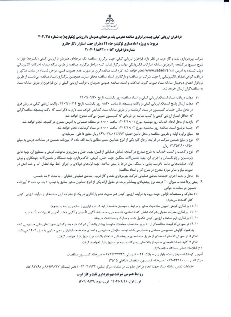 مربوط به پروژه آمادهسازی لوکیشن چاه 22 دهلران جهت استقرار دکل حفاری