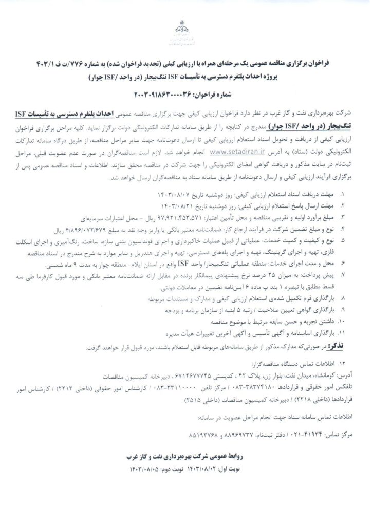 پروژه احداث پلتفرم دسترسی به تأسیسات ISF تنگبیجار (در واحد ISF/ چوار)