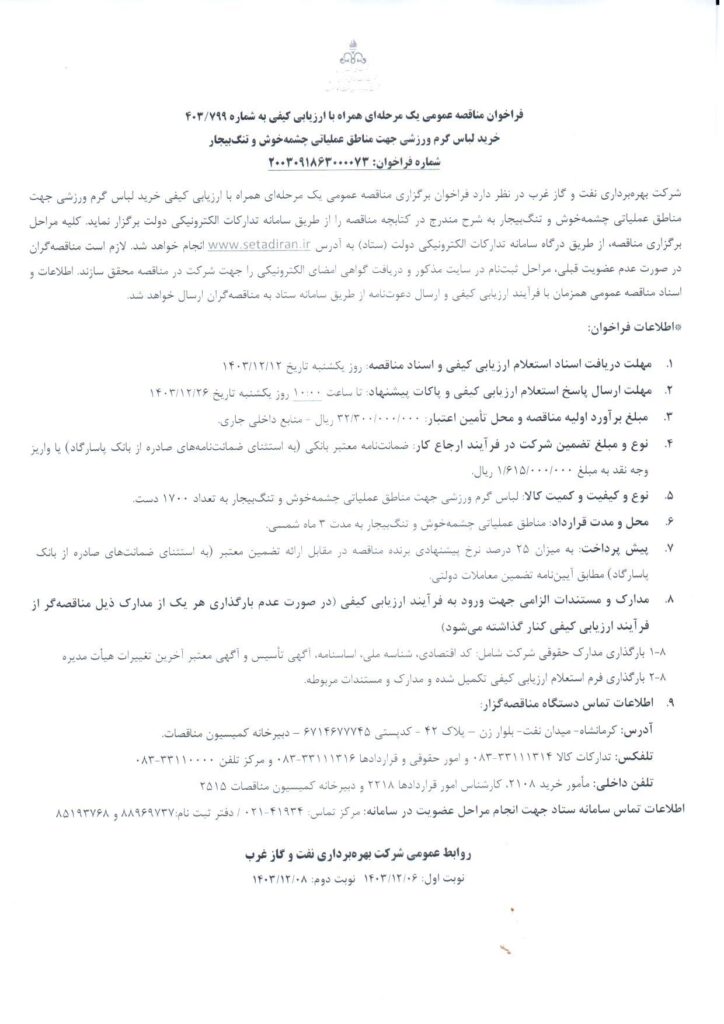 خرید لباس گرم ورزشی جهت مناطق عملیاتی چشمهخوش و تنگبیجار
