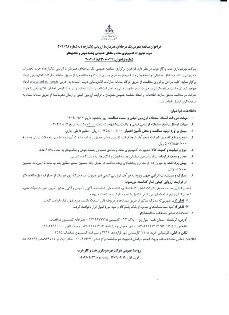 خرید تجهیزات کامپیوتری ستاد و مناطق عملیاتی چشمهخوش و تنگبیجار